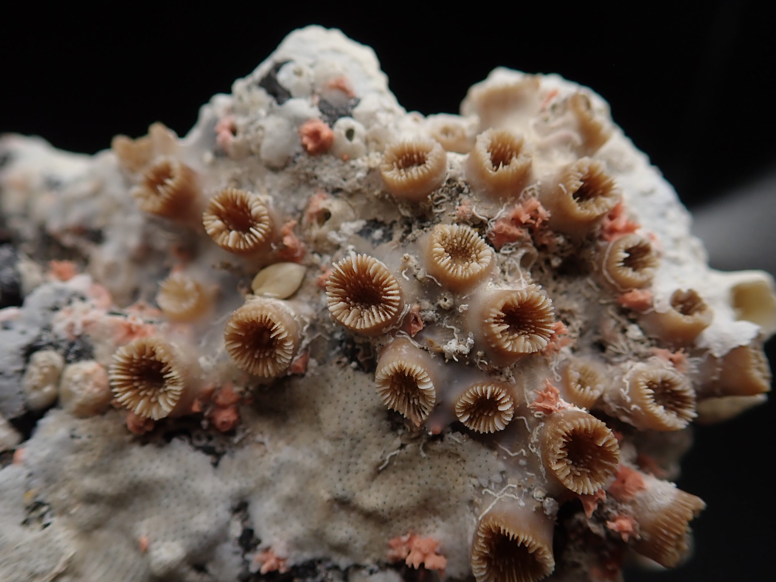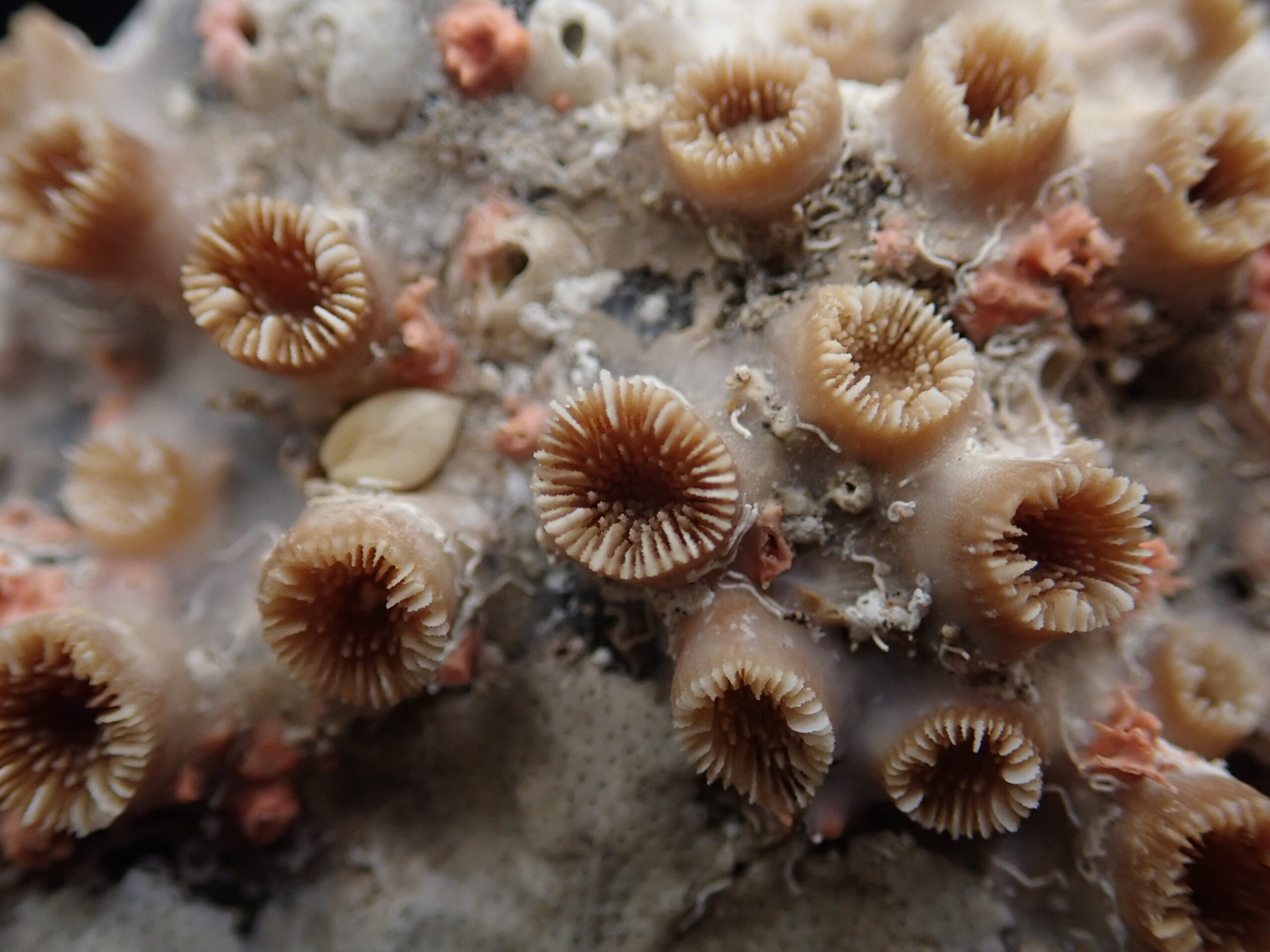 Esta especie forma colonias de tamaño mediano o pequeño, y sus pólipos no sobrepasan los 9 mm de diámetro y 14 mm de altura. Las colonias son de color marrón generalmente, con las costillas en la zona superior de tonos blanco y verdoso algunas veces, y el cáliz es marrón oscuro o negro. Forman una lámina basal fina que se extiende sobre el sustrato y que contiene los pólipos de forma apretada. Algunos son más alargados que otros, proporcionando un aspecto arbustivo a la colonia. Los cálices son alargados o circulares, con mucha variabilidad en profundidad.